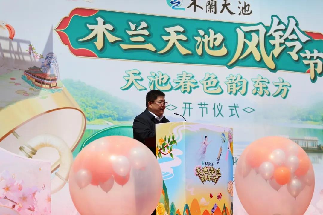 3月28日,由黃陂區(qū)文化和旅游局主辦,武漢市豐太木蘭天池旅游有限公司承辦的“天池春色韻東方”2021木蘭天池第六屆國(guó)際風(fēng)鈴節(jié)在木蘭天池景區(qū)盛大開幕!湖北省文化和旅游廳相關(guān)負(fù)責(zé)人、黃陂區(qū)副區(qū)長(zhǎng)汪利珍等出席了本屆木蘭天池風(fēng)鈴節(jié)開幕儀式。 △武漢市文化和旅游局副局長(zhǎng)范繼先致辭