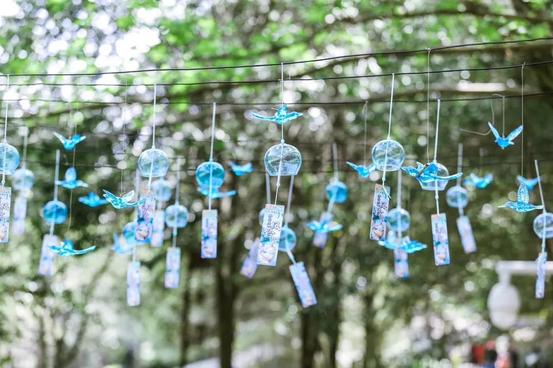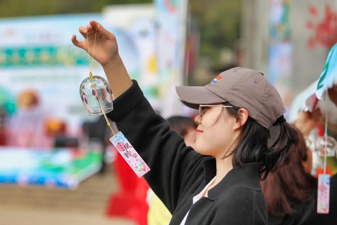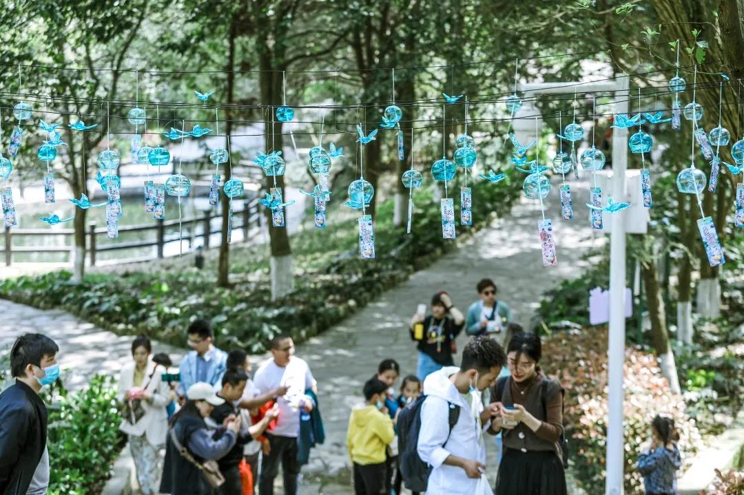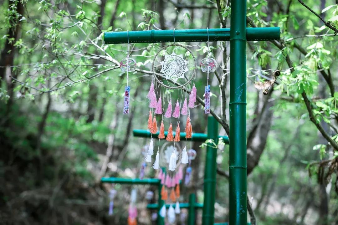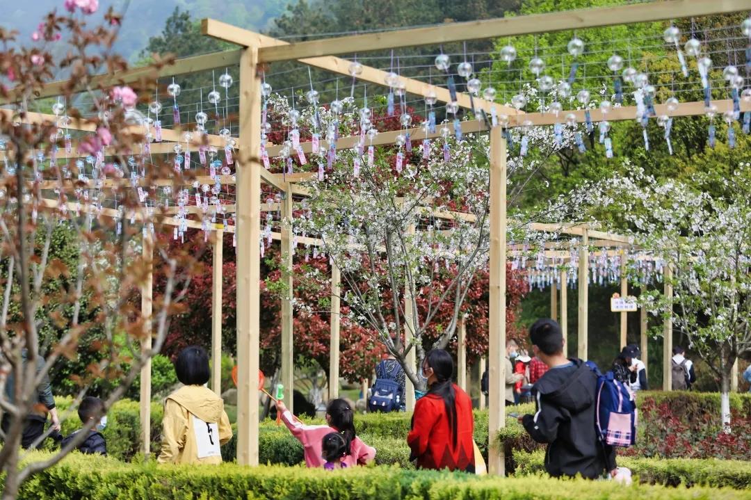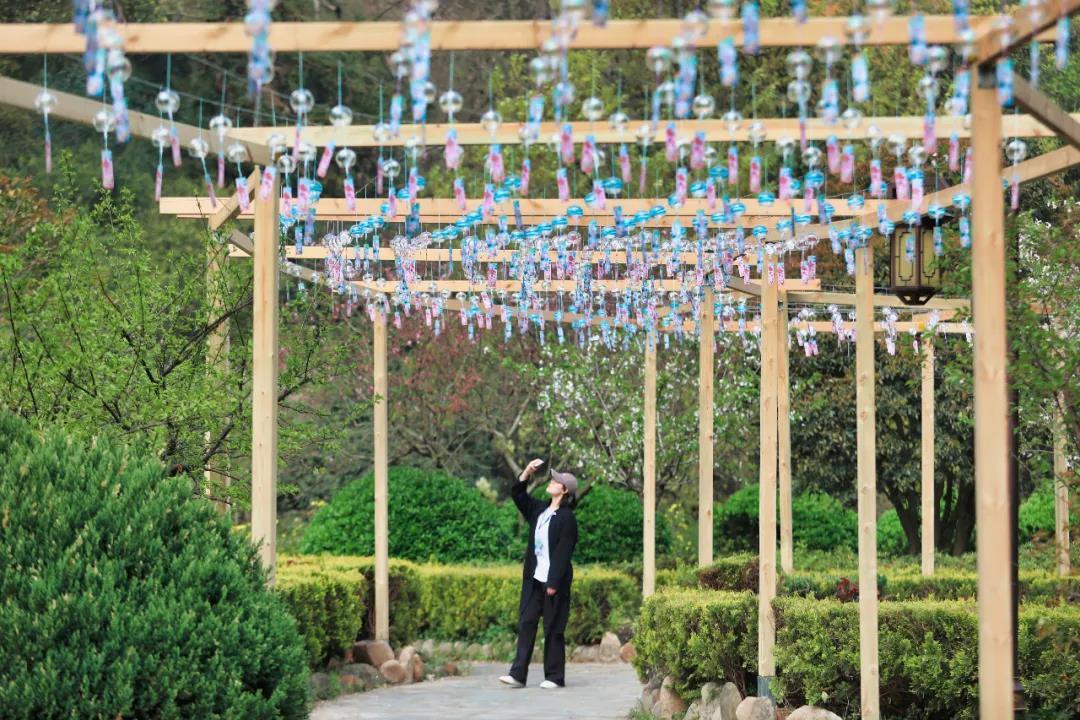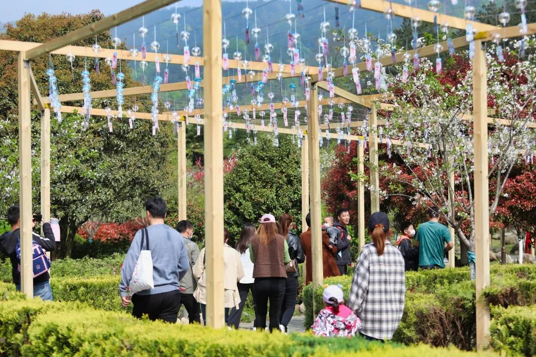 除了觀賞、傾聽,游客朋友們還可以在互動(dòng)體驗(yàn)區(qū)還領(lǐng)取許愿風(fēng)鈴,寫上愿望,連同風(fēng)鈴一起懸掛,祈愿平安喜樂,萬事皆勝意;又或者跟著老師一起親自手繪DIY一個(gè)專屬于自己的風(fēng)鈴~當(dāng)下正是春暖花開、萬物復(fù)蘇的好季節(jié),蒼翠欲滴的山林中隨處可見迎春花、杜鵑花、梅花、桃花、梨花、杏花、茶花、櫻花等競(jìng)相開放、爭(zhēng)奇斗艷,滿園的春色惹人沉醉。