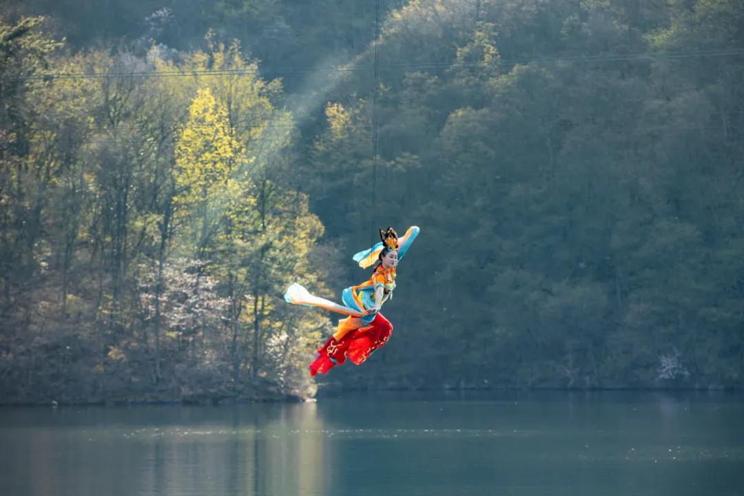 除了好看外,作為武漢老牌5A級(jí)景區(qū)的木蘭天池也變得越來越好玩了,新近打造的《天池飛仙》等游玩項(xiàng)目,在春節(jié)長(zhǎng)假一經(jīng)推出便成了網(wǎng)紅爆款,引來了新流量,成為了景區(qū)新名片。2021年木蘭天池依托于獨(dú)特的自然生態(tài)資源及醇厚的歷史人文背景,全新主題化打造湖北首個(gè)空中沉浸式主題體驗(yàn)項(xiàng)目——《天池飛仙》。項(xiàng)目采用高空威亞技術(shù),讓游客飛躍木蘭天池之上,在一覽天池美景的同時(shí),開啟飛檐走壁、御劍飛行的“仙俠夢(mèng)”。為了給游客帶來沉浸式的主題感受,《天池飛仙》還將推出不同的主題玩法,游客可以自行選擇劇本變裝成為故事主角。《天池飛仙》以敦煌飛仙為原型,以敦煌飛仙舞為亮點(diǎn),仙子們身著飛仙裙,衣袖舞動(dòng)在天池之間,手指輕輕撥動(dòng)月亮的琴弦,天空碧池相伴踏歌起舞; “百戰(zhàn)沙場(chǎng)碎鐵衣,城南已合數(shù)重圍” 《決戰(zhàn)天池之鏡》以巾幗英雄花木蘭為主角,她憑借智慧與勇敢拯救了國(guó)家,得到傳世稱頌;《仙劍奇夢(mèng)》以逍遙與小靈兒十年前的偶遇開始,他們追逐嬉鬧于仙靈島,共待花開時(shí);“我的意中人是個(gè)蓋世英雄,有一天他會(huì)身披金甲圣衣、踩著著七彩祥云來娶我,我猜中了開頭,卻猜不中結(jié)局……”《悟空與紫霞》的劇情,將彌補(bǔ)有情人終難兩全的遺憾,做一回悟空,轟轟烈烈的與紫霞相愛一次;《哪吒鬧天池》將中國(guó)傳統(tǒng)文化形象哪吒為主角,雖然成長(zhǎng)之路歷經(jīng)坎坷和磨難,但是他依舊沖出重重阻礙,最終成就自我;此外,《天池飛仙》還將為游客帶來卡通動(dòng)漫、科技穿越等多角色主題選擇,盡享“身懷絕技,飛躍天池”的沉浸式高空主題體驗(yàn)。飛躍天池間,覽峽谷春色;乘畫舫游船,舟行碧波上,賞花觀景亦逍遙。喜歡尋求刺激的朋友可以體驗(yàn)七彩滑草、極速飛索的速度與激情。