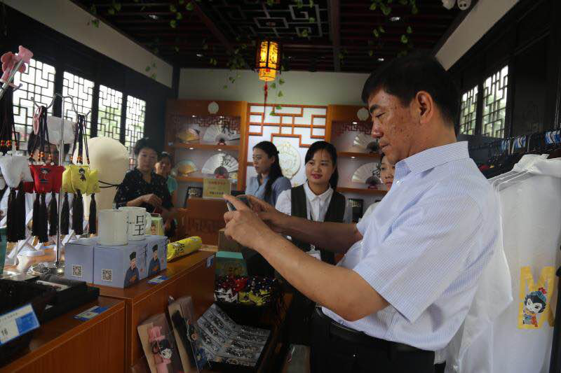 考察團在參觀考察木蘭花鄉(xiāng)商業(yè)街的時候,駐足于“木蘭有禮”店面,被木蘭將軍的神韻所吸引,對店內琳瑯滿目的商品產(chǎn)生了濃厚的興趣。